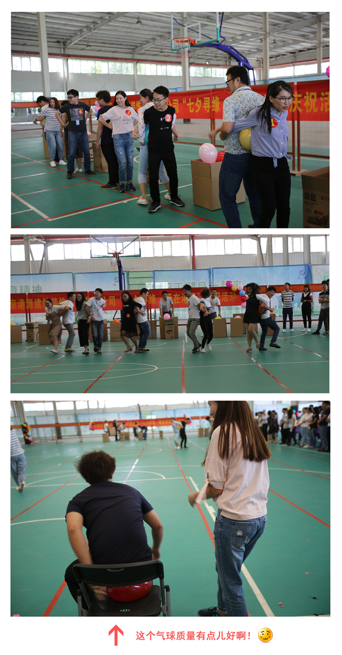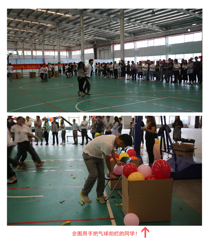 【游戲規則:男女搭配背靠背夾住氣球,從起點(diǎn)跑至終點(diǎn)并把氣球坐炸,以坐炸氣球的數量判斷勝負?!?/span>