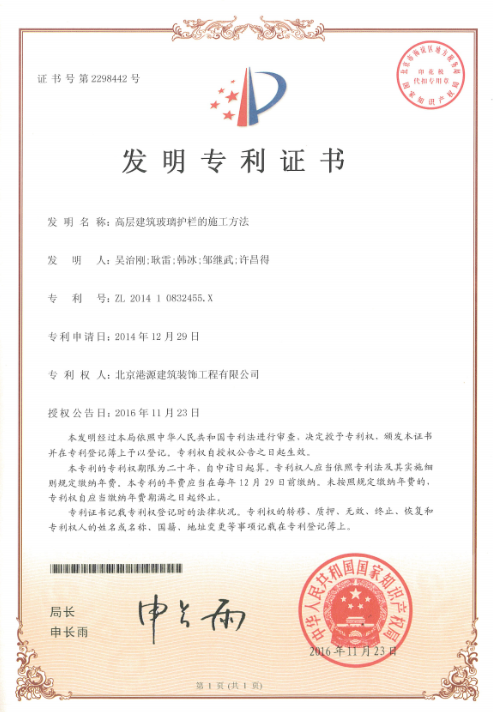 發(fā)明專(zhuān)利-高層建筑玻璃護欄的施工方法