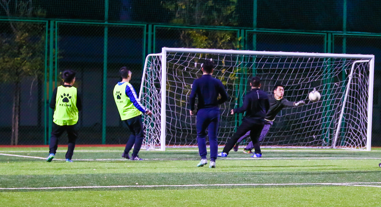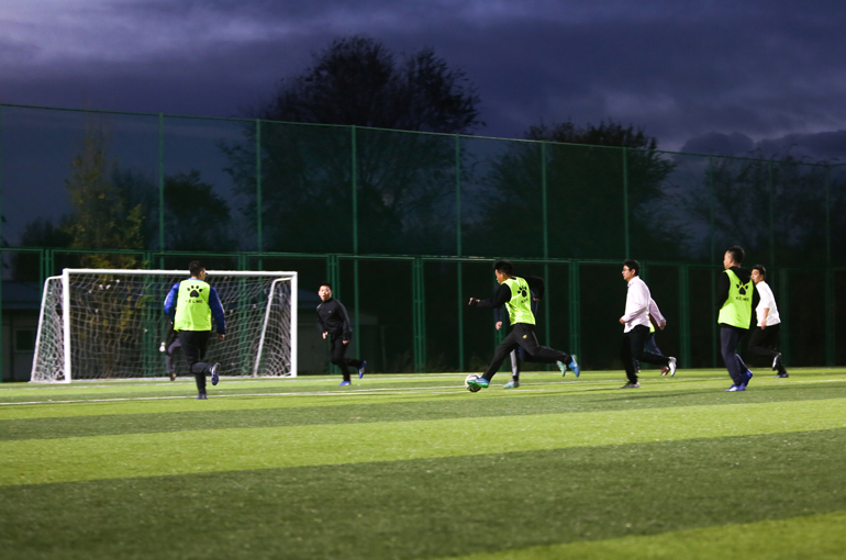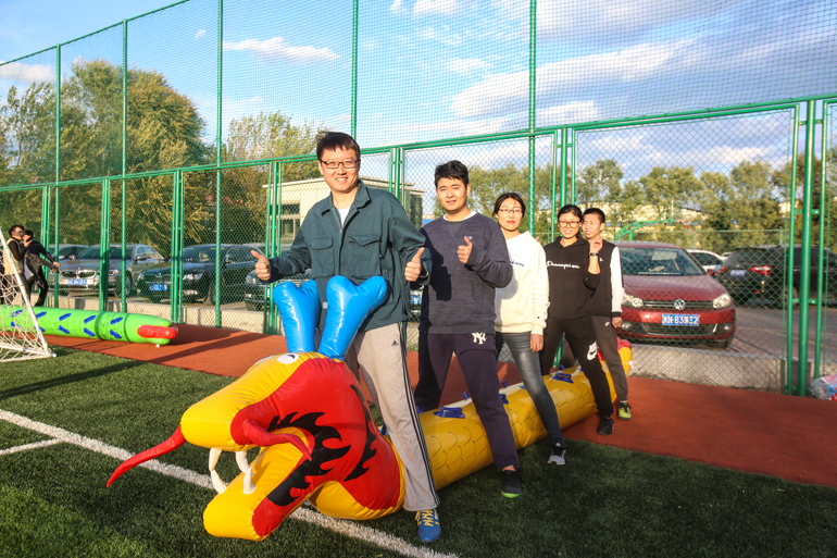 足球比賽是本屆運動(dòng)會(huì )呼聲最高的一個(gè)項目。在群眾的強烈要求下,原定的“五人足球”演變成了“九人足球”。隊員們在球場(chǎng)上都全力以赴,以致于第二天大家可以輕易地以走路姿勢來(lái)判斷誰(shuí)參加足球賽了(腿疼……)