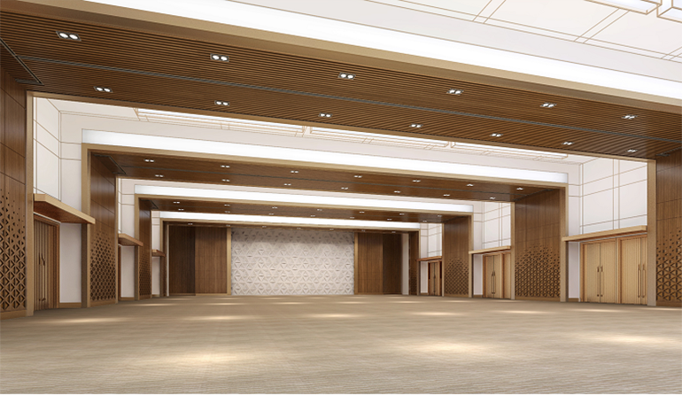 港源裝飾負責酒店康體一、二層及宴會(huì )廳一、二層超高公區內裝的精裝修施工。