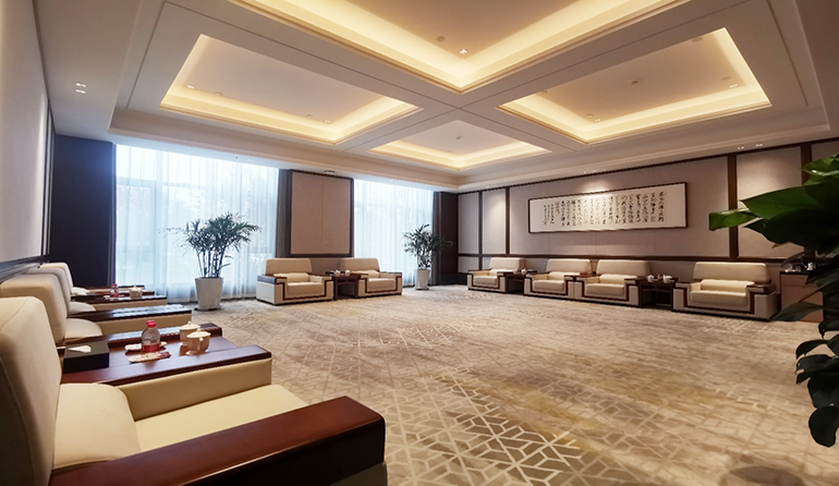 港源裝飾在本項目中負責商務(wù)1號樓、商務(wù)2號樓、接待中心、貴賓樓3號樓、貴賓6號樓及地下室全部區域的精裝修施工。