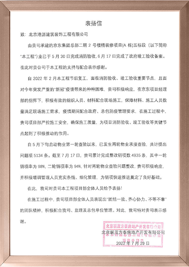 港源裝飾在本次合作中所參建的2號樓,將與1號樓、研發(fā)樓及已啟動(dòng)建設的3號樓組建京東集團在亦莊經(jīng)濟開(kāi)發(fā)區的核心基本盤(pán),是京東集團預期打造京東生態(tài)園區的核心地標之一。